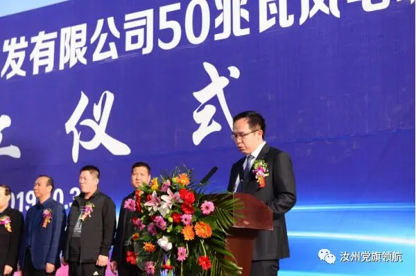 市政府党组成员、副县级干部史清秀作了讲话。她表示,汝州陵头牛头山风电开发有限公司50兆瓦风电场项目,为全市培育了一个新的产业和经济增长点。并希望陵头镇以“风”借势、顺“风”而起,尽好地主之谊,按照“优质、高效、方便、快捷”的原则,集中人力、物力,专人负责,特事特办,全力以赴为项目建设提供一流的服务,创造一流的发展环境,以风一样的速度,火一样的热情,促使风力发电项目早建成、早投产、早见效,早日造福人民群众。 市政府党组成员、副县级干部史清秀同志发表讲话 仪式上,陵头镇党委书记韩增群向与会领导同志作了致辞;邦振科技(北京)有限公司总经理、汝州陵头牛头山风电开发有限公司董事长樊浩杰介绍了项目情况;项目施工总包单位、特变电工(新疆)新能源股份有限公司副总经理兼风电事业部总经理焦海军对工程质量做了表态发言。 陵头镇党委书记韩增群同志致辞 邦振科技(北京)有限公司总经理、汝州陵头牛头山风电开发有限公司董事长樊浩杰先生介绍项目